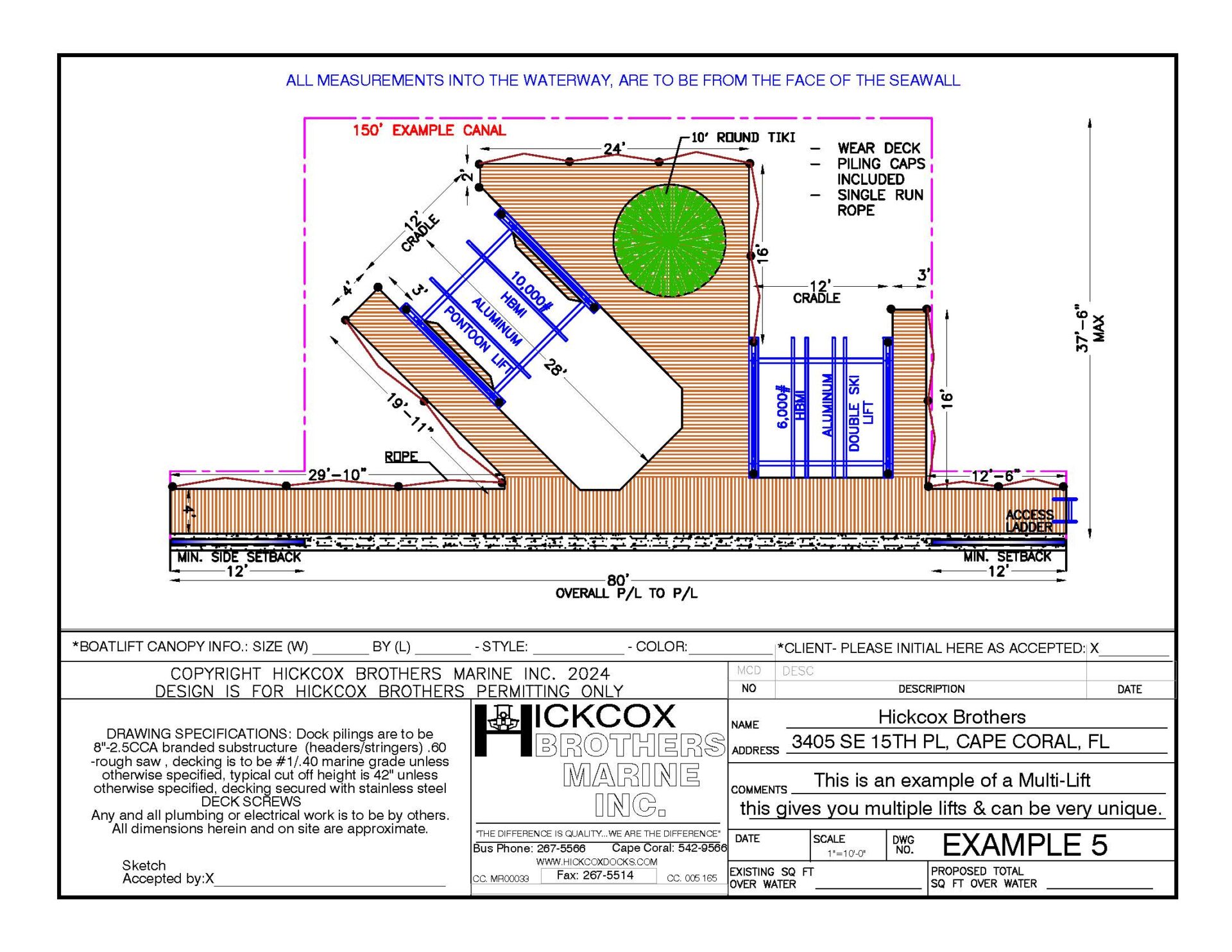 Dock Layouts See our sample layouts below, imagine one of these on your seawall…The best dock building and design in Lee County. Get the Layout you Love. These are just examples to help you get an idea of what’s possible… have something in mind? Contact us